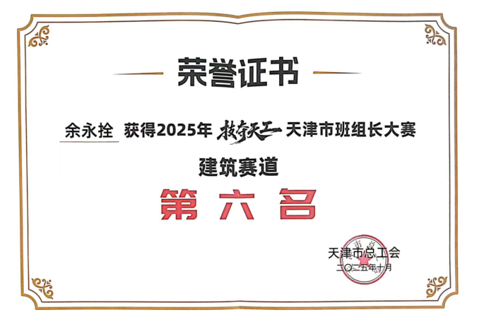 此次佳績是中冶天工“以賽促學、以賽促訓(xùn)”人才培養(yǎng)機制的生動成果。下一步,公司工會將進一步系統(tǒng)梳理參賽經(jīng)驗,通過開展“優(yōu)秀班組長經(jīng)驗分享會”“數(shù)字孿生技能集訓(xùn)”等活動,發(fā)揮獲獎選手的示范引領(lǐng)作用,不斷將賽事中的先進理念轉(zhuǎn)化為班組管理成效,同時持續(xù)深化產(chǎn)業(yè)工人隊伍建設(shè)改革,扎實推動一線管理人才能力與公司高質(zhì)量發(fā)展需求同頻共振,為天津經(jīng)濟建設(shè)與全國“紅旗杯”賽事備戰(zhàn)貢獻更多天工力量。