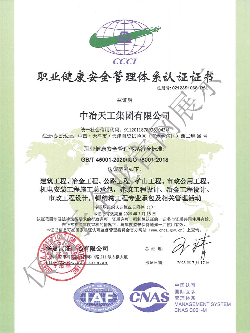 职业健康安全管理体系认证证书